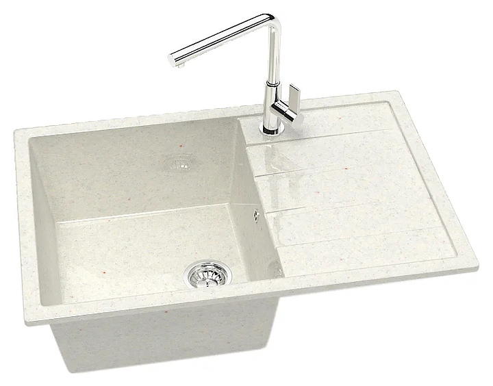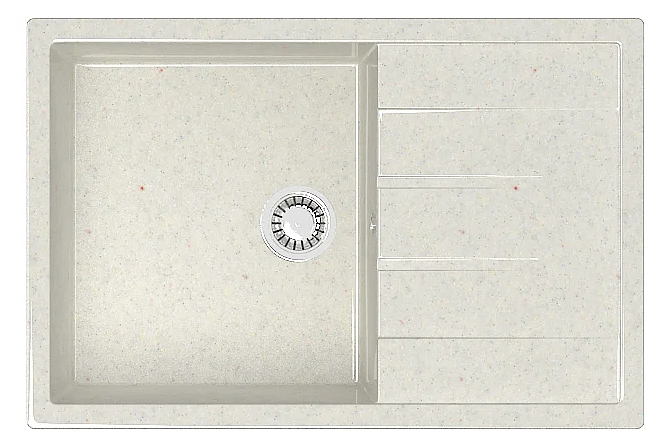 Мойка Marrbaxx Джоли Z161Q007 предназначена для установки в кухонных помещениях. Модель оснащена крылом, на котором удобно располагать посуду и другие бытовые принадлежности. Изделие выполнено из кварца, который отличается внешним видом, напоминающим натуральный камень, способностью поглощать шум воды, стойкостью к действию моющих средств, экологичностью и долговечностью. В комплект поставки входят сливная арматура, герметик и фреза. Смеситель в комплект поставки не входит и приобретается отдельно. Особенности: