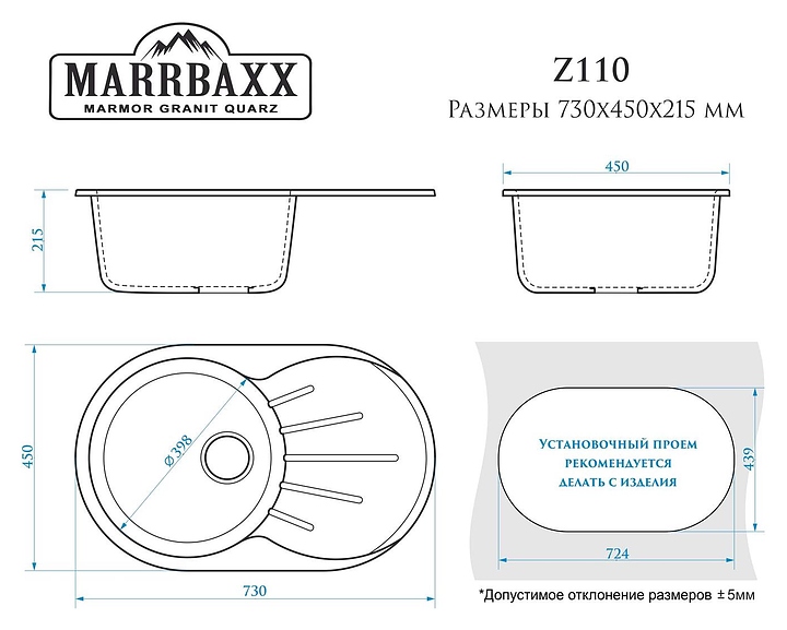 Мойка Marrbaxx Касандра Z110Q005 предназначена для установки в кухонных помещениях. Модель оснащена крылом, на котором удобно располагать посуду и другие бытовые принадлежности. Изделие выполнено из кварца, который отличается внешним видом, напоминающим натуральный камень, способностью поглощать шум воды, стойкостью к действию моющих средств, экологичностью и долговечностью. В комплект поставки входят сливная арматура, герметик и фреза. Смеситель в комплект поставки не входит и приобретается отдельно. Особенности: