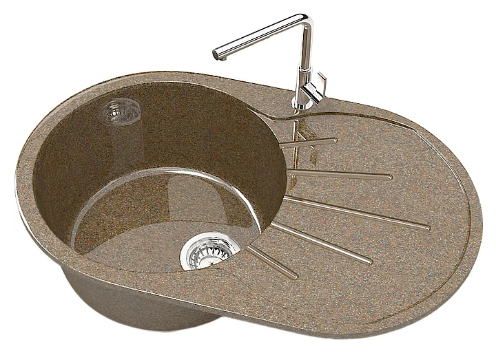 Мойка Marrbaxx Касандра Z110Q009 предназначена для установки в кухонных помещениях. Модель оснащена крылом, на котором удобно располагать посуду и другие бытовые принадлежности. Изделие выполнено из кварца, который отличается внешним видом, напоминающим натуральный камень, способностью поглощать шум воды, стойкостью к действию моющих средств, экологичностью и долговечностью. В комплект поставки входят сливная арматура, герметик и фреза. Смеситель в комплект поставки не входит и приобретается отдельно. Особенности: