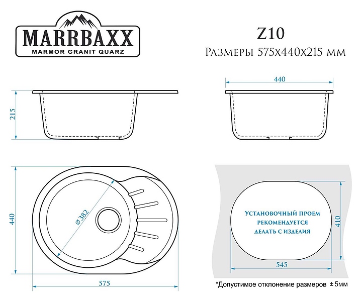 Мойка Marrbaxx Тейлор Z010Q010 предназначена для установки в кухонных помещениях. Модель оснащена крылом, на котором удобно располагать посуду и другие бытовые принадлежности. Изделие выполнено из кварца, который отличается внешним видом, напоминающим натуральный камень, способностью поглощать шум воды, стойкостью к действию моющих средств, экологичностью и долговечностью. В комплект поставки входят сливная арматура, герметик и фреза. Смеситель в комплект поставки не входит и приобретается отдельно. Особенности: