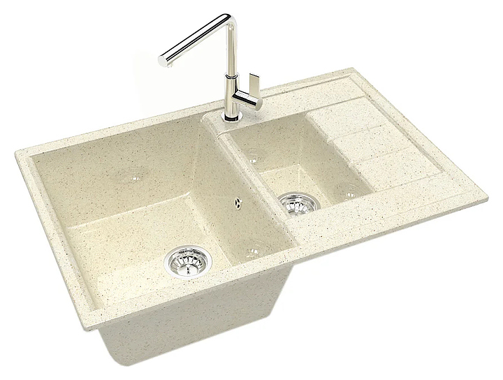 Мойка Marrbaxx Блонди Z210Q002 предназначена для установки в кухонных помещениях. Модель оснащена дополнительной чашей, а также крылом, на котором удобно располагать посуду и другие бытовые принадлежности. Изделие выполнено из кварца, который отличается внешним видом, напоминающим натуральный камень, способностью поглощать шум воды, стойкостью к действию моющих средств, экологичностью и долговечностью. В комплект поставки входят сливная арматура, герметик и фреза. Смеситель в комплект поставки не входит и приобретается отдельно. Особенности: