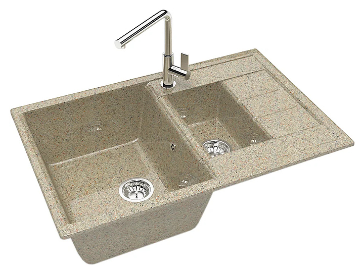 Мойка Marrbaxx Блонди Z210Q005 предназначена для установки в кухонных помещениях. Модель оснащена дополнительной чашей, а также крылом, на котором удобно располагать посуду и другие бытовые принадлежности. Изделие выполнено из кварца, который отличается внешним видом, напоминающим натуральный камень, способностью поглощать шум воды, стойкостью к действию моющих средств, экологичностью и долговечностью. В комплект поставки входят сливная арматура, герметик и фреза. Смеситель в комплект поставки не входит и приобретается отдельно. Особенности:
