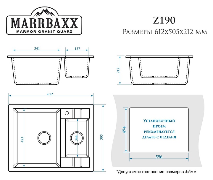 Мойка Marrbaxx Жаклин Z190Q001 предназначена для установки в кухонных помещениях. Модель оснащена дополнительной чашей. Изделие выполнено из кварца, который отличается внешним видом, напоминающим натуральный камень, способностью поглощать шум воды, стойкостью к действию моющих средств, экологичностью и долговечностью. В комплект поставки входят сливная арматура, фреза и герметик. Смеситель в комплект поставки не входит и приобретается отдельно. Особенности: