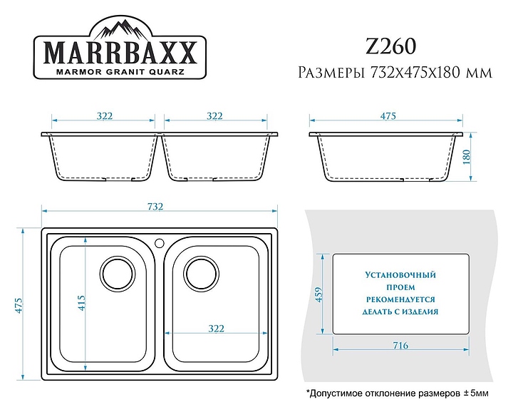 Мойка Marrbaxx Скай Z260Q008 предназначена для установки в кухонных помещениях. Модель оснащена 2 чашами. Изделие выполнено из кварца, который отличается внешним видом, напоминающим натуральный камень, способностью поглощать шум воды, стойкостью к действию моющих средств, экологичностью и долговечностью. В комплект поставки входят сливная арматура и герметик. Смеситель в комплект поставки не входит и приобретается отдельно. Особенности: