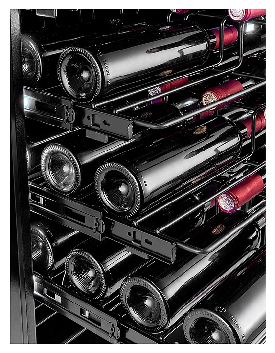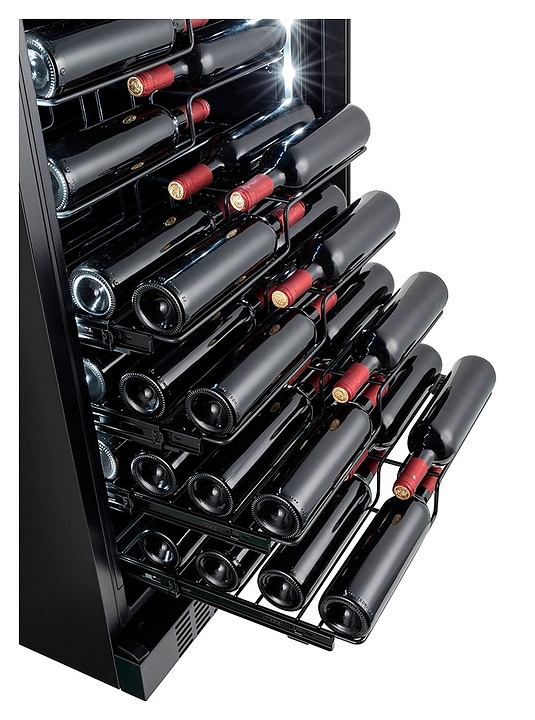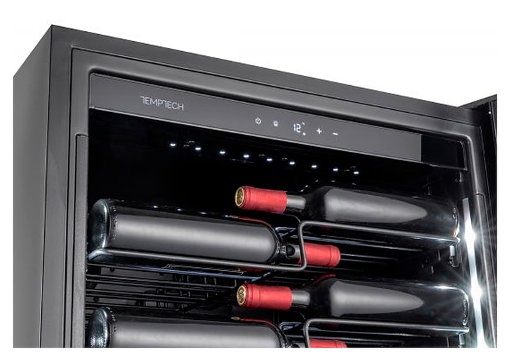 Винный шкаф Temptech Copenhagen CPRO1800SX предназначен для охлаждения, хранения при оптимальных условиях и демонстрации бутилированного вина различных сортов в барах, ресторанах, специализированных магазинах, подсобных складских помещениях, а также домашних условиях. Модель оснащена монотемпературной холодильной камерой с 12 выдвижными полками на телескопических направляющих, фронтальной цокольной решеткой и распашной дверью с прозрачным обзорным остеклением. Корпус и рама двери выполнены из металла с антикоррозийным покрытием черного цвета, рама двери с покрытием цвета нержавеющей стали, полки – из стали. Особенности: