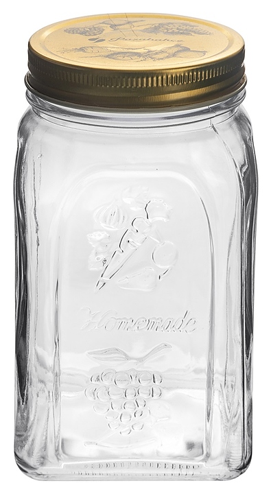 Банка Pasabahce Homemade 80385/b используется на предприятиях общественного питания и торговли, ресепшнах, в офисах, домашних условиях и путешествиях для хранения различных весовых товаров: кондитерских изделий таких как конфеты или печенье, круп, чая, специй, других сыпучих пищевых продуктов и жидкостей. Модель оснащена цилиндрическим горлышком и круглой завинчивающейся крышкой. Емкость квадратного сечения и крышка выполнены из высококачественного стекла с декоративным рельефом в виде фруктов и овощей, крышка – из металла с золотистой поверхностью. Особенности: