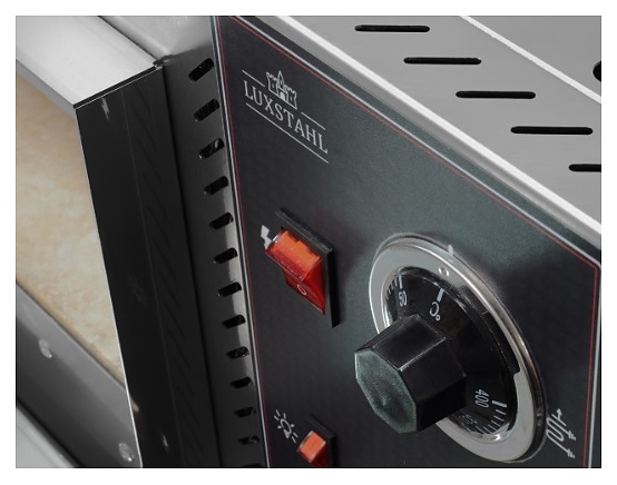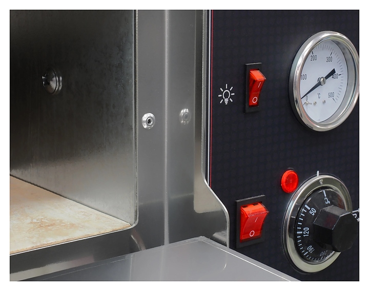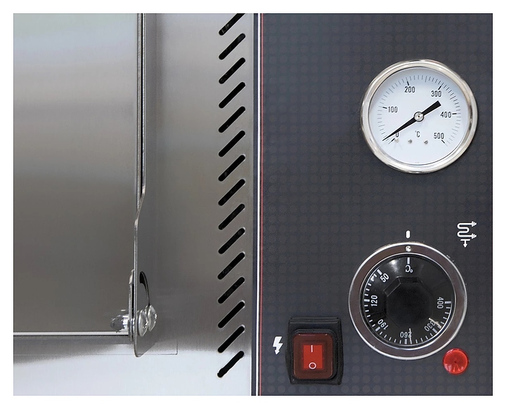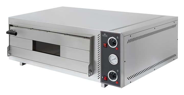Печь Luxstahl ПЭП-2 предназначена для выпечки и разогрева пиццы, а также приготовления других изделий, не требующих пароувлажнения: фокаччи, хачапури, слоек, запеченных овощей и запеканок на предприятиях общественного питания и торговли. Модель оснащена вместительной камерой, откидной дверцей с рукояткой, механической панелью управления с поворотными регуляторами, светодиодными индикаторами и аналоговым термометром с круглым циферблатом. Корпус и внутренняя облицовка камеры выполнены из высококачественной нержавеющей стали. Особенности: