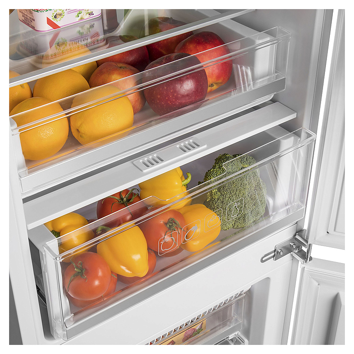 Встраиваемый холодильник HOMSair FB177NFFW предназначен для охлаждения и кратковременного хранения скоропортящихся продуктов, напитков и лекарств в частных домах, квартирах, отелях и офисах. Модель оснащена светодиодной сенсорной панелью управления с дисплеем, регулируемыми ножками и перенавешиваемыми дверцами. Корпус выполнен из металла, полки - из прозрачного закалённого стекла. Комплектация: