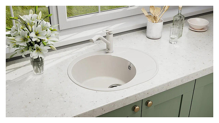 Мойка ULGRAN Quartz Nora 585-08 предназначена для рационального планирования рабочего места на кухне. Круглая модель отличается простым уходом благодаря отсутствию углов, в которых скапливается грязь. Крыло-сушилка служит подставкой для посуды и продуктов. Мойка поглощает шум от льющейся воды и гремящей посуды. Изделие выполнено из кварцевого композита, который гарантирует безопасность для здоровья человека и окружающей среды, выдерживает колебания температуры, имеет стойкость к бытовым ударам, истиранию и царапинам, к пищевым и химическим красителям. В комплект поставки входят сливная арматура и гофротруба. Особенности: