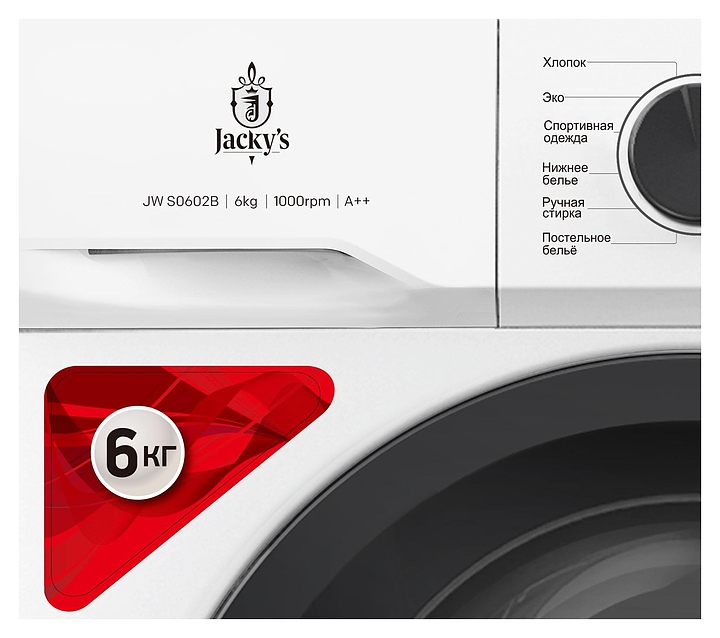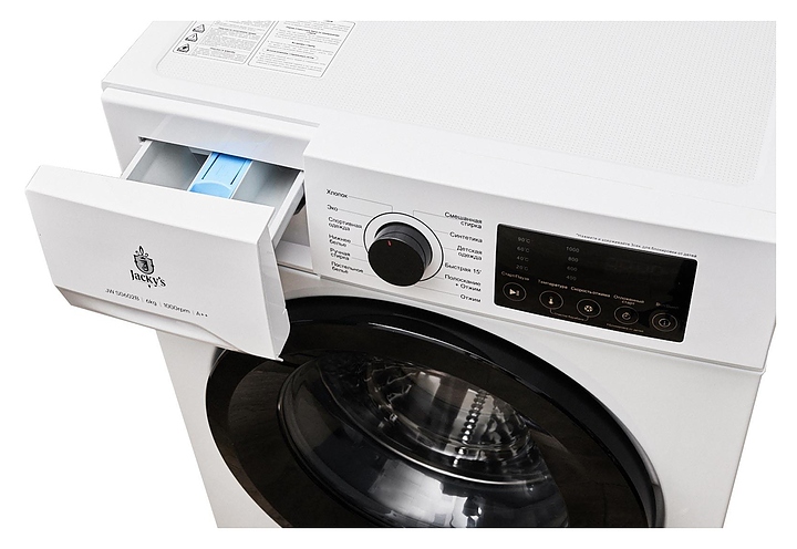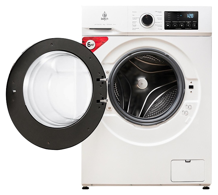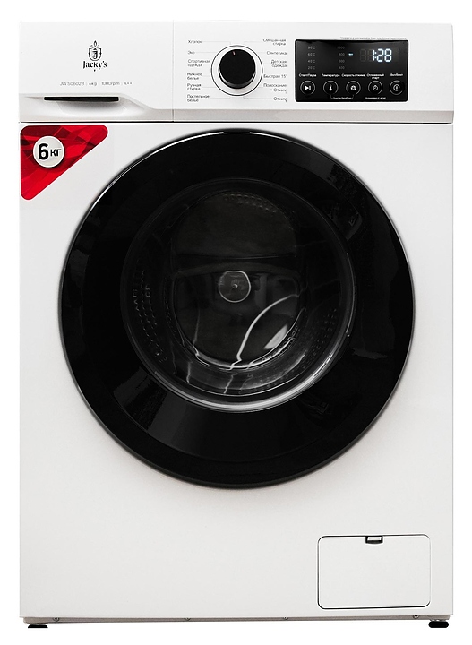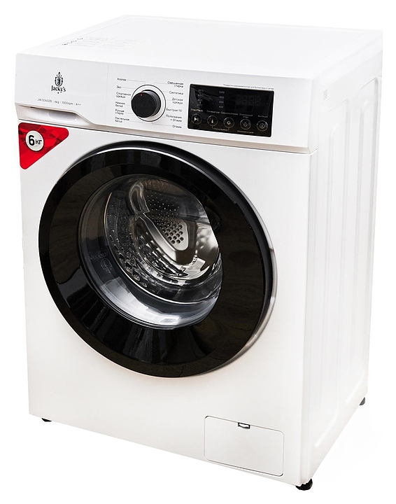 Стиральная машина Jacky's JW S0602B используется в квартирах и частных домах для стирки, полоскания и отжима белья, ткани и одежды. Модель оснащена электронной панелью управления с LED дисплеем, регулируемыми ножками и автооткрыванием двери. В комплект поставки входят шланг подачи холодной воды, ключ для регулировки ножек и заглушки отверстий для болтов. Программы: