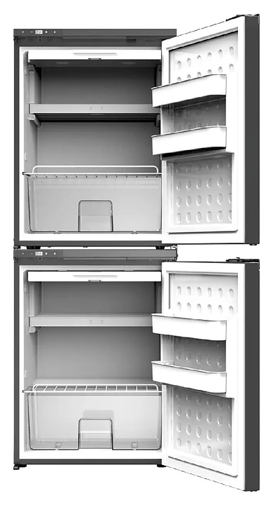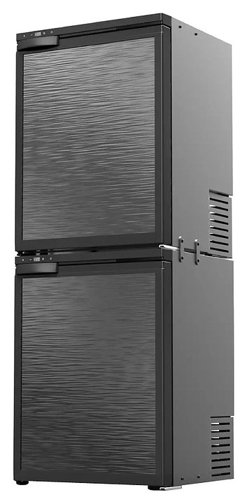 Встраиваемый автохолодильник MobileComfort MCR-130 предназначен для хранения и транспортировки в охлажденном и замороженном состоянии продуктов питания и напитков в грузовых автомобилях, автодомах, специальной технике, лодках, катерах, яхтах, других видах транспорта и в быту. Модель оснащена 2 отдельными холодильными камерами, 2 распашными дверьми с небольшими горизонтальными рукоятками и съемными декоративными фасадными панелями, интегрированными морозильными камерами и 2 электронными панелями управления с высококонтрастными светодиодными дисплеями индикации. Особенности: