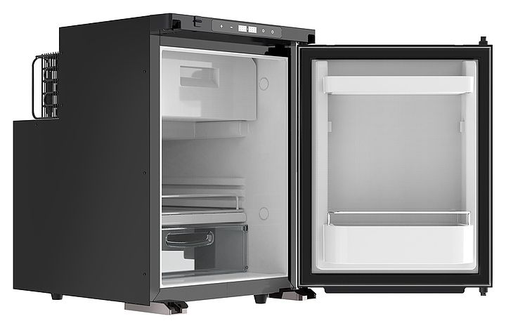 Встраиваемый автохолодильник MobileComfort MCR-50 предназначен для хранения и транспортировки в охлажденном и замороженном состоянии продуктов питания и напитков в грузовых автомобилях, автодомах, специальной технике, туристических автобусах, лодках, катерах, яхтах, других видах транспорта и в быту. Модель оснащена холодильной камерой с распашной дверью, интегрированной морозильной камерой и электронной панелью управления с 2 светодиодными цифровыми дисплеями индикации. Корпус выполнен из алюминия и АБС-пластика. Особенности: