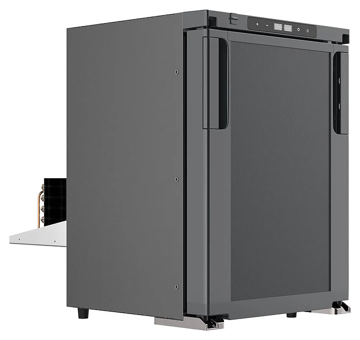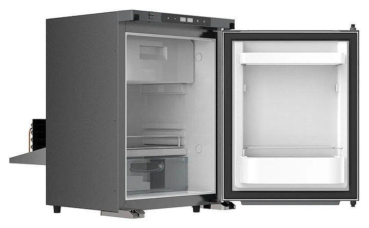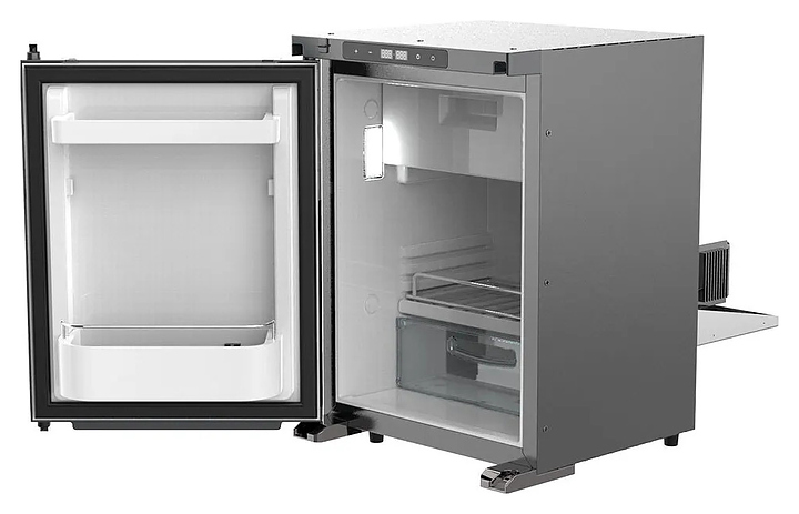 Встраиваемый автохолодильник MobileComfort MCR-40 предназначен для хранения и транспортировки в охлажденном и замороженном состоянии продуктов питания и напитков в грузовых автомобилях, автодомах, специальной технике, туристических автобусах, лодках, катерах, яхтах, других видах транспорта и в быту. Модель оснащена холодильной камерой с распашной дверью, интегрированной морозильной камерой и электронной панелью управления с 2 светодиодными цифровыми дисплеями индикации. Корпус выполнен из алюминия и АБС-пластика. Особенности: