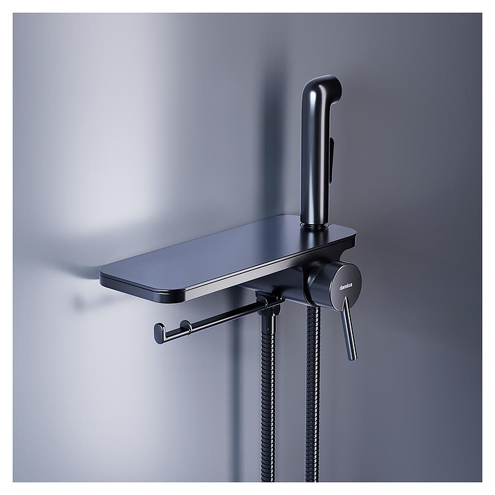 Душ гигиенический встраиваемый Damixa Origin Bit 773500300 с полкой и держателем туалетной бумаги, черный