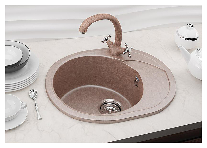 Мойка ULGRAN U-403-308 предназначена для рационального планирования рабочего места на кухне. Круглая чаша отличается простым уходом благодаря отсутствию углов, в которых скапливается грязь. Крыло-сушилка служит подставкой для посуды и продуктов. Мойка оснащена переливом и поглощает шум от льющейся воды и гремящей посуды. Изделие выполнено из искусственного мрамора, который гарантирует безопасность для здоровья человека и окружающей среды, имеет стойкость к появлению сколов и царапин, к пищевым и химическим красителям. В комплект поставки входят сливная арматура, корзинчатый вентиль и сифон. Дополнительные характеристики: