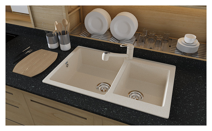 Мойка ULGRAN U-505-308 предназначена для рационального планирования рабочего места на кухне. Вместительная чаша большого размера и небольшая дополнительная чаша расположены параллельно друг другу. Мойка оснащена переливом и поглощает шум от льющейся воды и гремящей посуды. Изделие выполнено из искусственного мрамора, который гарантирует безопасность для здоровья человека и окружающей среды, имеет стойкость к появлению сколов и царапин, к пищевым и химическим красителям. В комплект поставки входят сливная арматура, корзинчатый вентиль и сифон. Дополнительные характеристики: