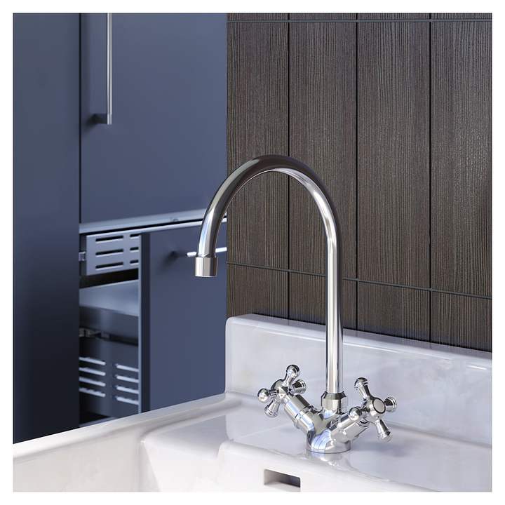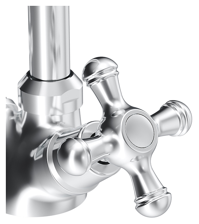 Смеситель Damixa Retro 230000000 предназначен для использования на кухне для подачи горячей и холодной воды. Модель оснащена керамической кран-буксой, обеспечивающей плавный ход вентилей и бесшумное смешивание воды, а также аэратором для создания мягкой ровной струи без разбрызгивания. Корпус изделия выполнен из латуни, которая отличается прочностью, долговечностью и устойчивостью к перепадам температуры. В комплект поставки входят аэратор, гибкая подводка и крепления. Особенности: