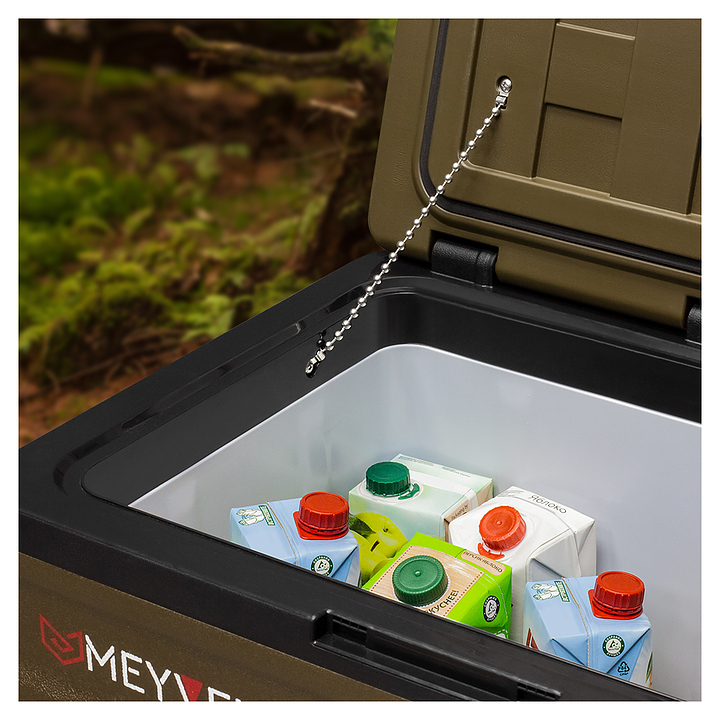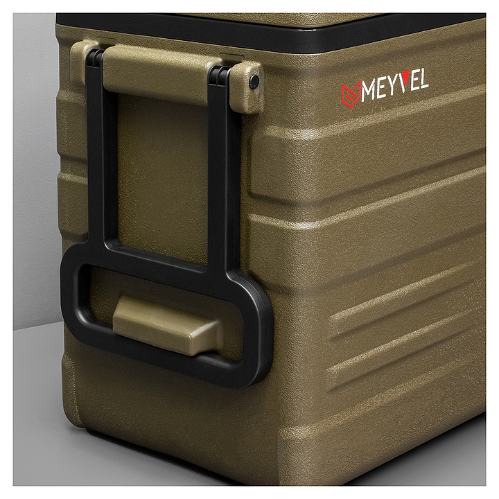 Переносной автохолодильник MEYVEL AF-U65-travel предназначен для охлаждения, глубокой заморозки, хранения и транспортировки продуктов питания и напитков в легковых и грузовых автомобилях, автодомах, специальной технике, лодках, катерах, яхтах, других видах транспорта и в быту. Модель оснащена откидной крышкой с интегрированной рукояткой, электронной панелью управления с дисплеем и 4 подстаканниками. Корпус выполнен из прочного пластика, теплоизоляция – пенополиуретан высокой плотности. Особенности: