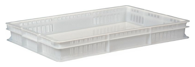 Ящик для полуфабрикатов Luxstahl 600х400х75 мм перфорированные бока, сплошное дно, ПЭНД [ЯП 1.2]