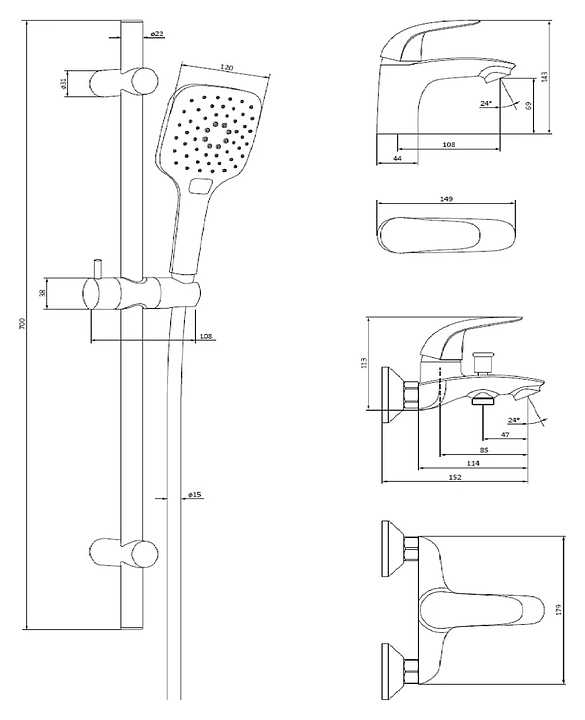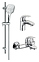 Душевой комплект Damixa Palace Bit 409310000 предназначен для использования в ванных помещениях. Модель оснащена душевым гарнитуром, включающим в себя штангу, ручную лейку и душевой шланг, смесителем для ванны с душем и смесителем для раковины. Изделие выполнено из латуни, которая отличается прочностью, долговечностью и устойчивостью к перепадам температур. В комплект поставки входят смеситель для ванны с душем, смеситель для раковины, эксцентрики, душевая стойка, верхний душ, ручная лейка и душевой шланг. Особенности: