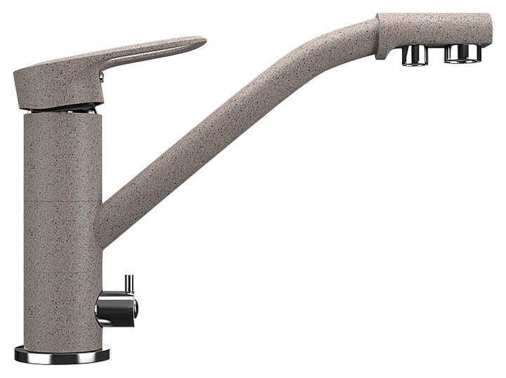 Смеситель ULGRAN U-010-302 предназначен для подачи горячей и холодной воды в кухонных помещениях. Модель оснащена дополнительным краном для подключения фильтрованной воды и керамическим картриджем, обеспечивающим плавный ход рычага смесителя, контроль и точность при выборе напора и температуры. Съемный аэратор создает мягкую струю без брызг и экономит воду. Корпус выполнен из высококачественной латуни, которая отличается прочностью, долговечностью и устойчивостью к перепадам температур, аэратор - из пластика. В комплект поставки входят гибкая подводка, переходник-цанга и крепления. Особенности: