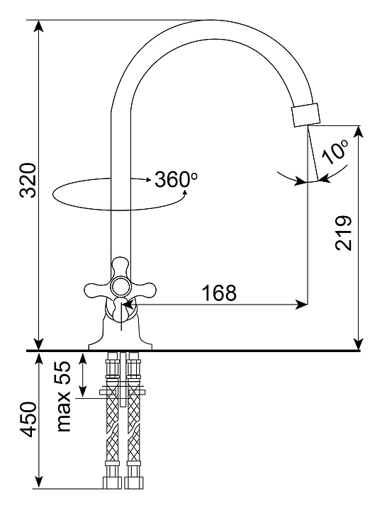 Смеситель ULGRAN U-012-343 предназначен для подачи горячей и холодной воды в кухонных помещениях. Модель оснащена керамической кран-буксой, обеспечивающей плавный ход вентилей и бесшумное смешивание воды. Съемный аэратор создает мягкую струю без брызг и экономит воду. Корпус выполнен из высококачественной латуни, которая отличается прочностью, долговечностью и устойчивостью к перепадам температур, аэратор - из пластика. В комплект поставки входят гибкая подводка и крепления. Особенности: