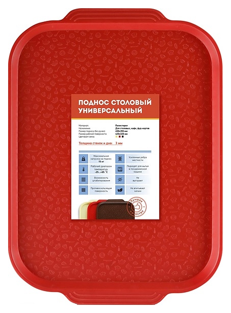 Поднос столовый Клен PS Red 4410 450х355 мм (полистирол) с ручками красный