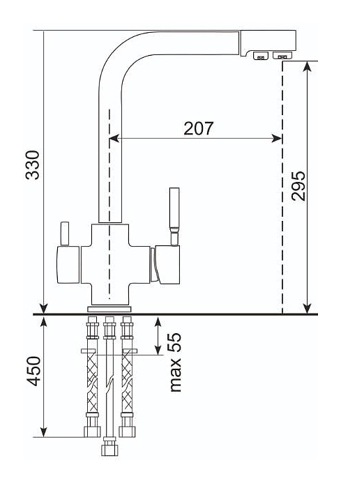Смеситель ULGRAN Quartz UQ-016-05 предназначен для подачи горячей и холодной воды в кухонных помещениях. Модель оснащена дополнительным изливом для подключения фильтрованной воды и керамическим картриджем, обеспечивающим плавный ход рычага смесителя, контроль и точность при выборе напора и температуры. Съемный аэратор создает мягкую струю без брызг и экономит воду. Корпус выполнен из высококачественной латуни, которая отличается прочностью, долговечностью и устойчивостью к перепадам температур, аэратор - из пластика. В комплект поставки входят гибкая подводка, набор для подсоединения фильтра питьевой воды и крепление. Особенности: