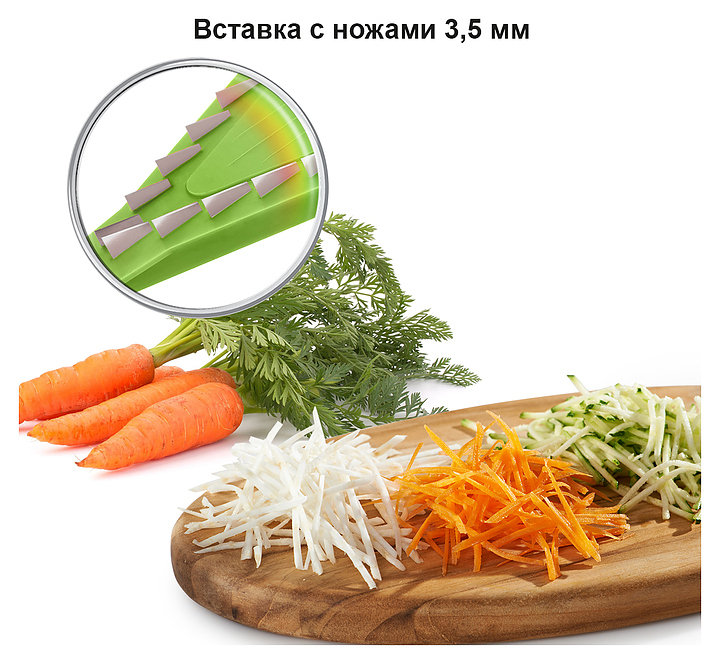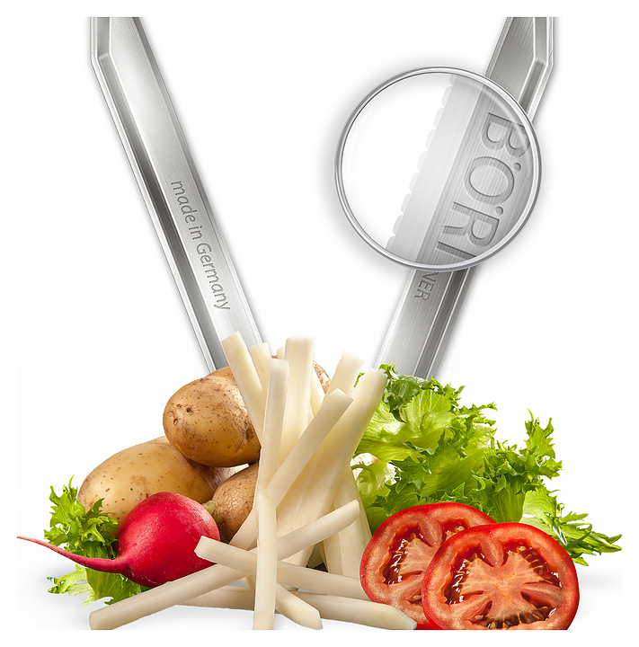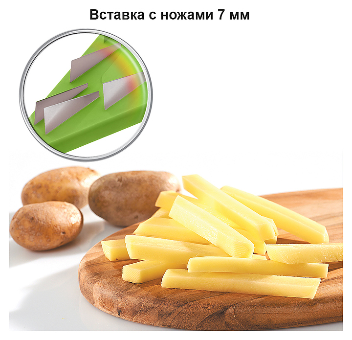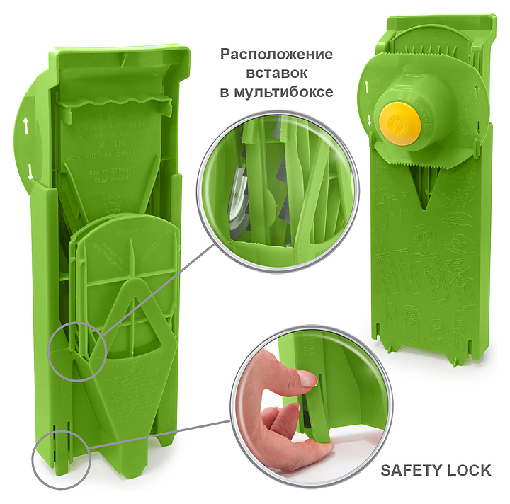 Овощерезка Borner Trend 3811010 используется на предприятиях общественного питания и торговли, в частных домах и квартирах для нарезки фруктов и овощей, а также колбас и других продуктов. Модель оснащена 12 видами нарезки и вставками, которые фиксируются защёлкиванием в основной раме. Корпус и держатель выполнены из ABS-пластика, ножи - из нержавеющей стали. Комплектация: