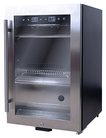 Шкаф для мяса MeatAge LUX SN-52 предназначен для охлаждения и вызревания мяса, ветчины и салями в частных домах, квартирах, отелях и офисах. Модель оснащена сенсорной панелью управления и запираемой дверцей с прочными петлями и замком. Внутренняя камера и ручки выполнены из нержавеющей стали, дверная рама - из бесшовной нержавеющей стали, дверца - из трехслойного анти-УФ стекла. В комплект поставки входят 2 хромированных полки. Особенности:
