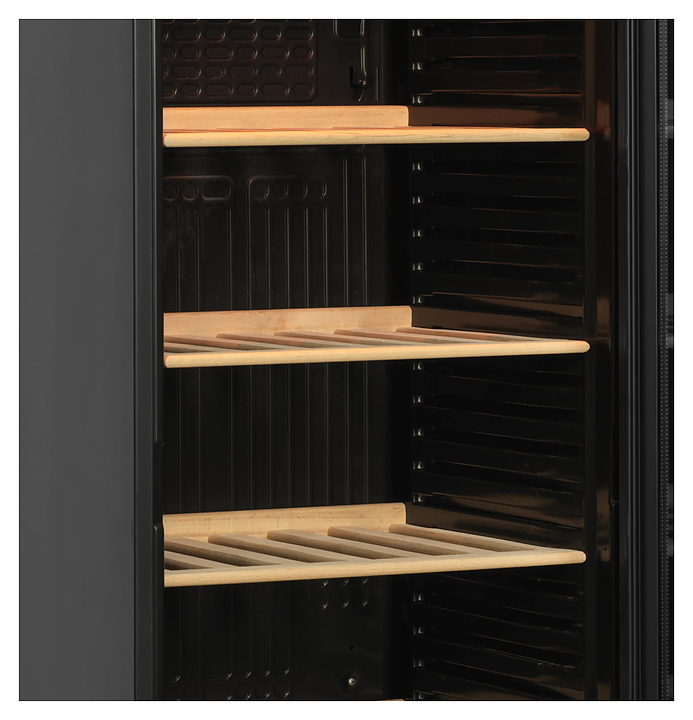 Винный шкаф TEFCOLD CPV1380E создает оптимальные условия для сохранения всех вкусовых свойств вина, идеален для хранения и демонстрации вина в барах, ресторанах, специализированных магазинах, частных домах или квартирах. Модель оснащена панелью управления в верхней части холодильного шкафа и распашной дверью с высокопрочным стеклом. Внутренняя обшивка выполнена из черного ABS-пластика. В комплект поставки входят 6 регулируемых деревянных полок для вина. Особенности: