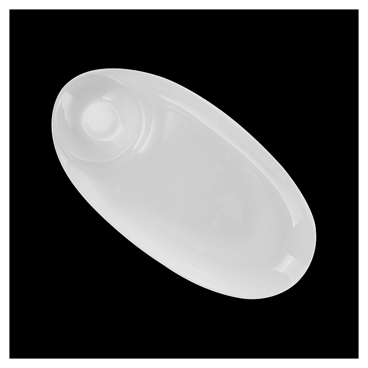 Блюдо Chan Wave Classic ivory LQ-Q1828 предназначено для профессионального использования в ресторанах. Модель имеет овальную форму и оснащена емкостью для соуса. Посуда изготавливается из твердого фарфора приятного молочного оттенка. Утолщенные края препятствуют образованию сколов, а устойчивая к истиранию глазурь предотвращает появление темных полос от столовых приборов. Особенности: