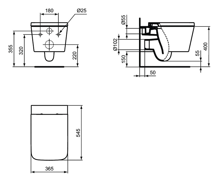 Унитаз Ideal Standard Blend Cube T368601 выполнен в современном стиле. Благодаря подвесной конструкции модель не занимает много места в помещении, а свободное пространство под чашей делает уборку в ванной комнате гораздо легче. Безободковое исполнение позволяет предотвратить скопление бактерий и грязи на внутренней поверхности чаши и обеспечивает ее чистоту и гигиеничность использования. Изделие выполнено из санфарфора, который обладает повышенной прочностью, устойчив к негативным внешним факторам, а также способен долгое время сохранять идеальную белизну. Инсталляция, сиденье и крышка в комплект поставки не входят. Особенности: