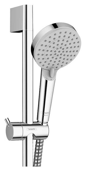 Душевой гарнитур Hansgrohe HG Vernis Blend Vario 26275000 выполнен в современном стиле и предназначен для использования в ванных комнатах для личной гигиены. Модель оснащена ручной лейкой, душевым шлангом с защитой от перекручивания, душевой штангой с держателем для ручного душа, а также системой QuickClean для легкой очистки от известковых отложений. Настенное крепление выполнено из хромированного пластика. В комплект поставки входят ручной душ, держатель, штанга и душевой шланг. Особенности: