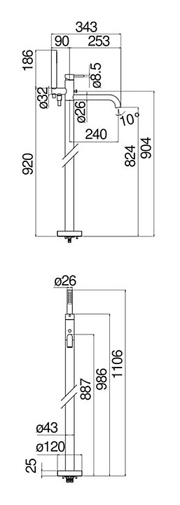 Напольный смеситель NOBILI LIVE WE00180/TBM предназначен для подачи горячей и холодной воды в ванных помещениях. Модель оснащена аэратором против известковых отложений и дивертором с автоматическим возвратом. В комплект поставки входит душевой гарнитур. Скрытая часть в комплект поставки не входит. Особенности: