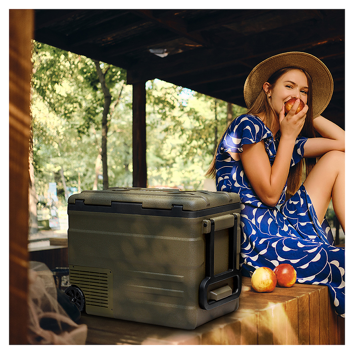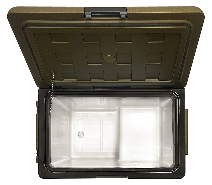 Переносной автохолодильник MEYVEL AF-U55-travel предназначен для охлаждения, глубокой заморозки, хранения и транспортировки продуктов питания и напитков в легковых и грузовых автомобилях, автодомах, специальной технике, лодках, катерах, яхтах, других видах транспорта и в быту. Модель оснащена откидной крышкой с интегрированной рукояткой, электронной панелью управления с дисплеем и 4 подстаканниками. Корпус выполнен из прочного пластика, теплоизоляция – пенополиуретан высокой плотности. Особенности: