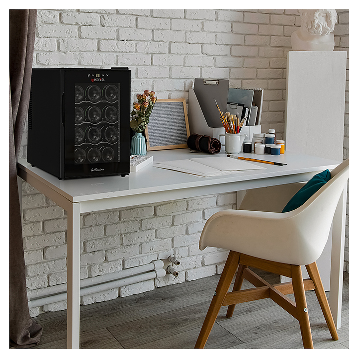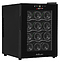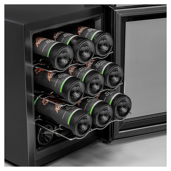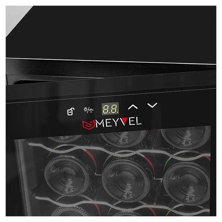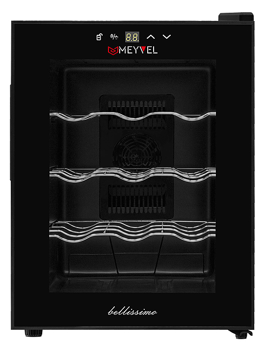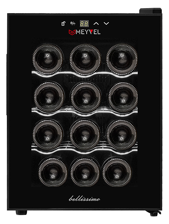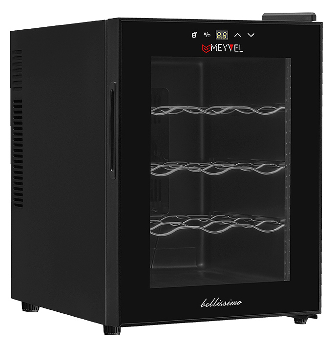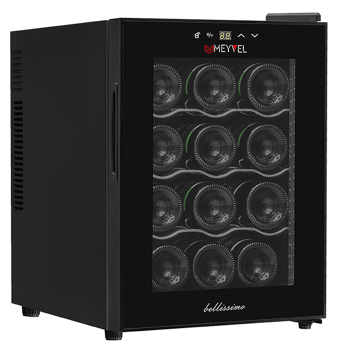 Винный шкаф MEYVEL MV12-TB1 предназначен для демонстрации, хранения и создания оптимальных условий для сохранения всех вкусовых свойств вина в бутылках на предприятиях общественного питания, торговли, в барах, ресторанах, специализированных магазинах, частных домах или квартирах. Модель оснащена сенсорной панелью управления, электронным термостатом и светодиодной подсветкой. Корпус выполнен из окрашенной в черный цвет стали, дверь - из пластика и двойного стекла с защитой от ультрафиолетовых лучей, полки - из хромированного металла. Особенности: