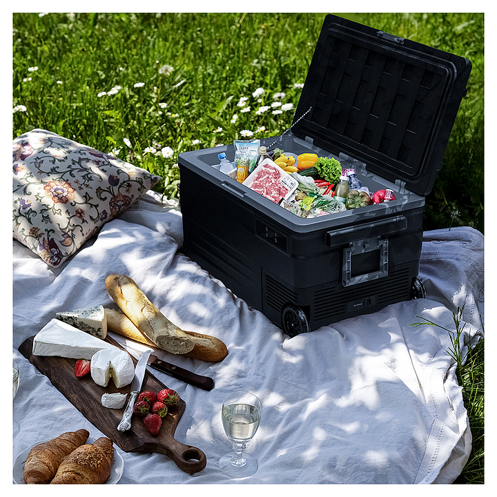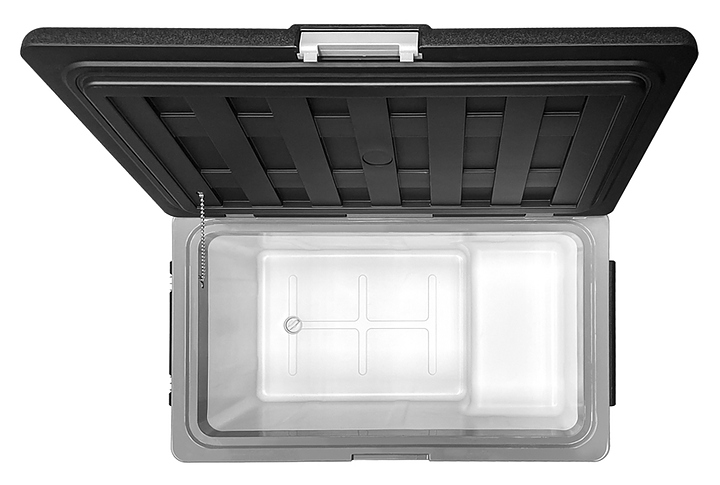 Переносной автохолодильник Alpicool U75 предназначен для охлаждения и глубокой заморозки, хранения и транспортировки продуктов питания и напитков в легковых и грузовых автомобилях, автодомах, специальной технике, лодках, катерах, яхтах, других видах транспорта и в быту. Модель оснащена электронной панелью управления с дисплеем, герметичным компрессором, электронным термостатом и подстаканниками. Внешняя облицовка корпуса выполнена из прочного пластика, теплоизоляция – пенополиуретан высокой плотности. Особенности: