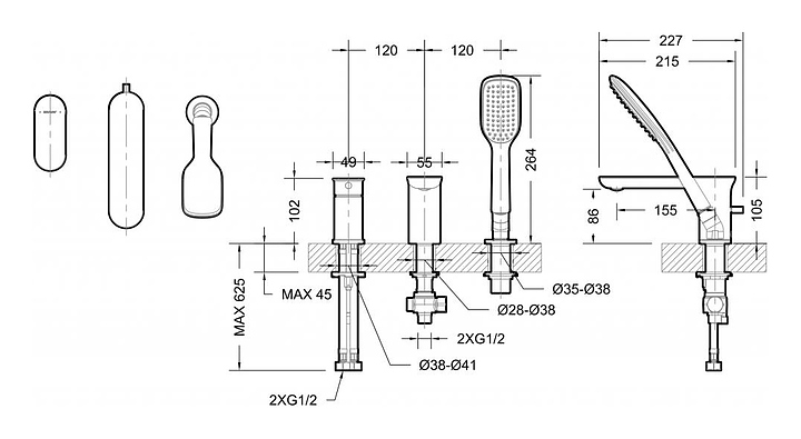 Смеситель для ванны с душем BRAVAT Gina F565104C-2-ENG