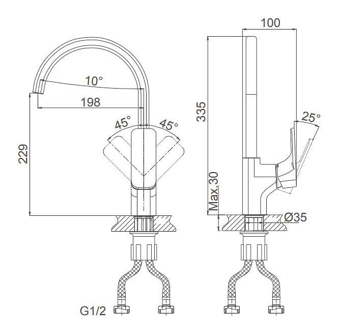 Смеситель D&K Berlin.Technische DA1432425 предназначен для подачи горячей и холодной воды в кухонных помещениях. Модель оснащена керамическим картриджем, обеспечивающим плавный ход рычага смесителя, контроль и точность при выборе напора и температуры воды. Изделие выполнено из латуни, которая отличается прочностью, долговечностью и устойчивостью к перепадам температуры. В комплект поставки входят гибкая подводка и крепежная гайка. Особенности: