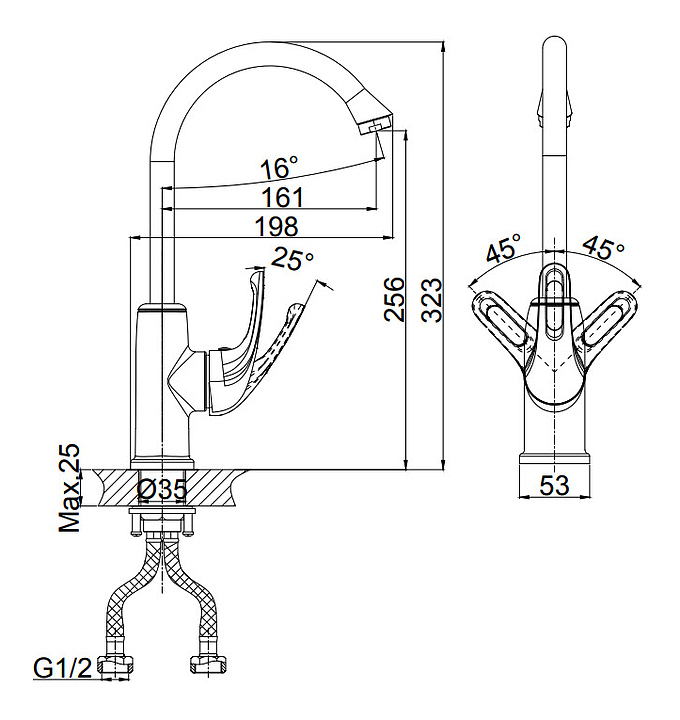 Смеситель D&K Rhein.Eucharius DA1372420 предназначен для подачи горячей и холодной воды в кухонных помещениях. Модель оснащена керамическим картриджем, обеспечивающим плавный ход рычага смесителя, контроль и точность при выборе напора и температуры воды. Аэратор Neoperl уменьшает расход воды и создает струю без брызг. Изделие выполнено из латуни, которая отличается прочностью, долговечностью и устойчивостью к перепадам температуры. В комплект поставки входят гибкая подводка и крепежная гайка. Особенности: