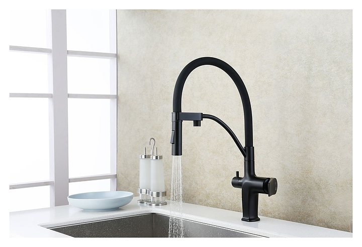 Смеситель LEMARK Bronx LM3761BL предназначен для подачи горячей и холодной воды в кухонных помещениях. Модель оснащена гибким изливом, подключением к фильтру питьевой воды и керамическим картриджем, обеспечивающим плавный ход рычага смесителя, контроль и точность при выборе напора и температуры воды. Изделие выполнено из латуни, которая отличается прочностью, долговечностью и устойчивостью к перепадам температуры. Дополнительные характеристики: