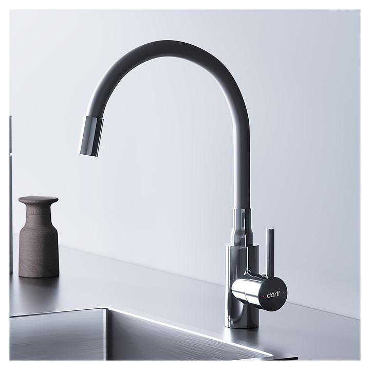 Смеситель Dorff Logic D3007633 предназначен для использования на кухне для подачи горячей и холодной воды. Модель оснащена гибким изливом с эффектом памяти, керамическим картриджем, обеспечивающим плавный ход рычага смесителя, контроль и точность при выборе напора и температуры воды, а также аэратором для создания мягкой ровной струи без разбрызгивания. Особенности: