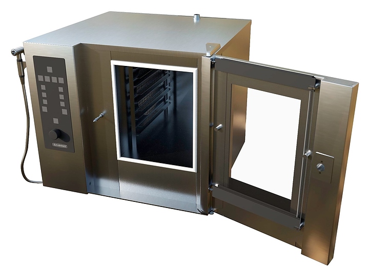 Пароконвектомат Gabino Combi-611b предназначен для обжаривания, приготовления на пару, бланширования, запекания и других видов тепловой обработки продуктов на предприятиях общественного питания и торговли. Модель оснащена однозональным термощупом, таймером, дверным механизмом с двухходовым замком и регулируемымми по высоте ножками. Корпус выполнен из шлифованной нержавеющей стали, детали, подвергаемые санитарной очистке - из нержавеющей стали AISI 304. Гастроемкости в комплект поставки не входят и приобретаются отдельно. Особенности:
