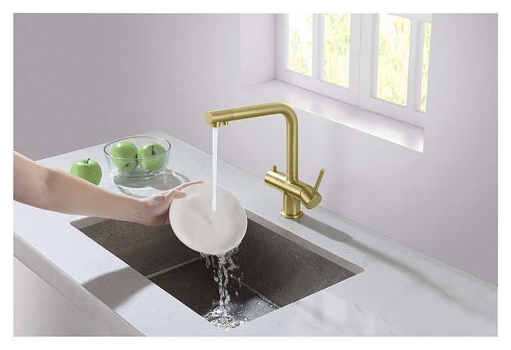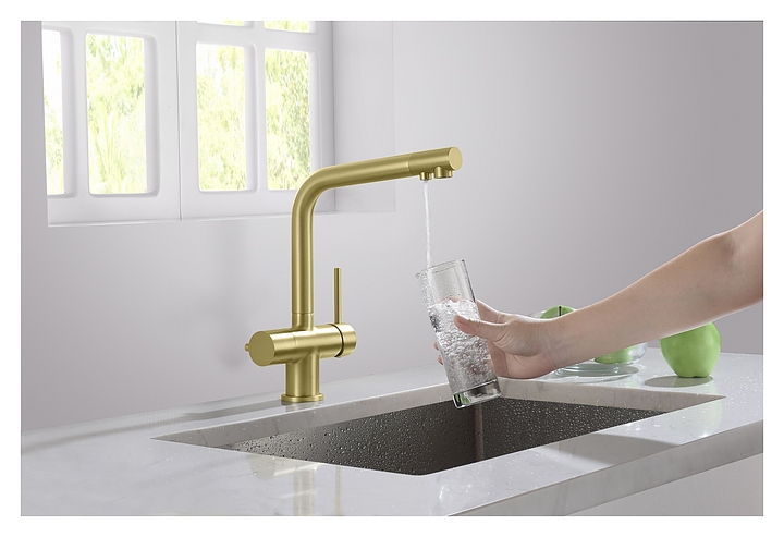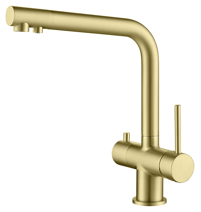 Смеситель TIMO Saona 2396/17F предназначен для подачи горячей и холодной воды в кухонных помещениях. Модель оснащена двухканальным керамическим картриджем с функцией подключения к фильтру для воды и минерализатору или баллону с газом для получения газированной воды. Высокий излив подходит для моек с двумя чашами, а также позволяет справляться с мытьем габаритной посуды. Вертикальное расположение рычага смесителя позволяет не задевать ручкой за стеновые панели, фартук и предметы, которые находятся за смесителем. Изделие выполнено из латуни, отличающейся прочностью, долговечностью и устойчивостью к перепадам температур. В комплект поставки входят 3 гибкие подводки, адаптер для соединения с трубкой фильтра, гайка с фиксирующими винтами, 2 резиновых и 1 металлическое кольца. Дополнительные характеристики: