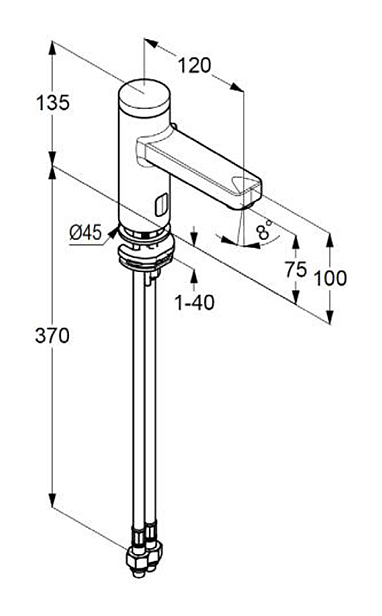 Смеситель для раковины KLUDI Zenta E 3810039 предназначен для подачи горячей и холодной воды в ванных помещениях. Модель оснащена оптическим датчиком движения для бесконтактной подачи воды, клапаном защиты от обратного потока и рычагом изменения температуры. Система быстрого монтажа позволяет установить смеситель легко и просто. В комплект поставки входят литиевая батарея CR-P2 6V и гибкая подводка с сеточкой. Особенности: