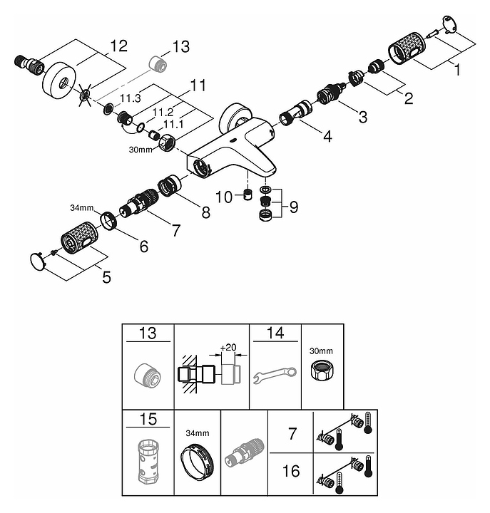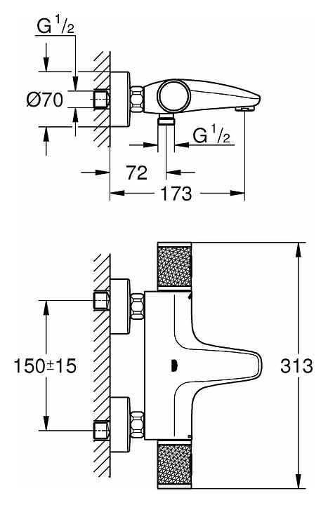 Смеситель для ванны термостат Grohe Grohtherm 1000 Performance Pro 34830000 хром