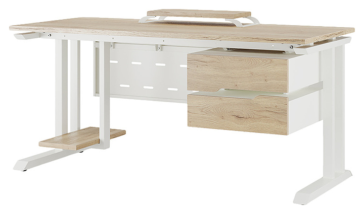 Офисный стол Кобор L1-180/60 white/natural используется в офисных помещениях и кабинетах руководителей. Модель оснащена L-образными опорами. Каркас выполнен из металла, выкрашенного в цвет белый муар (RAL9016), столешница – из ламинированной древесно-стружечной плиты (ЛДСП) цвета натуральный дуб (H1180 ST37). Опции (заказываются отдельно):