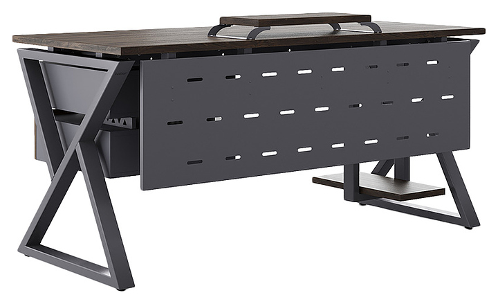Офисный стол Кобор W-80/80 graphite/charlston используется в офисных помещениях и кабинетах руководителей. Модель оснащена W-образными опорами. Каркас выполнен из металла, выкрашенного в цвет графит муар (RAL7024), столешница – из ламинированной древесно-стружечной плиты (ЛДСП) цвета дуб чарльстон (H3154 ST36). Опции (заказываются отдельно):