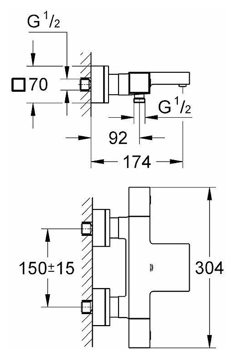 Смеситель для ванны с душем термостатический Grohe Grohtherm Cube 34497000 хром